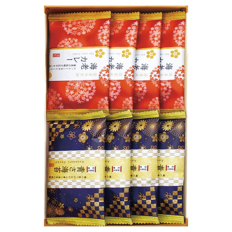 セット内容/青さ海苔煎餅・海老カレー煎餅×各4