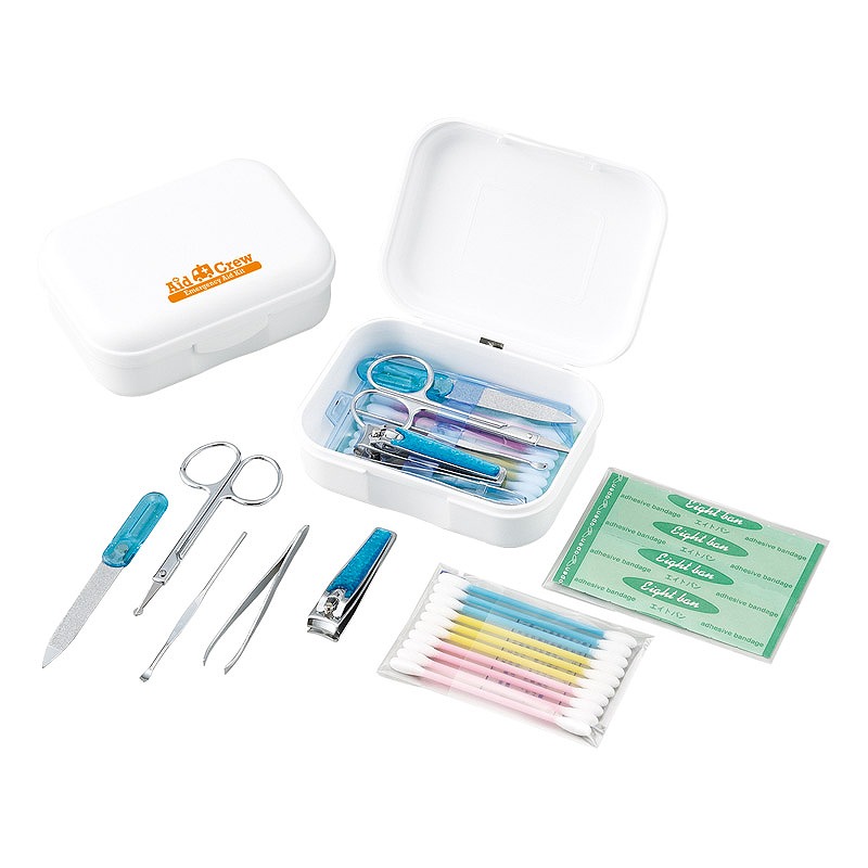 セット内容/専用ケース・キズテープM(3枚)・グルーミング5点セット(爪切り・エチケットハサミ・耳かき・爪ヤスリ・毛抜き兼ピンセット)・カラー綿棒(10本)×各1