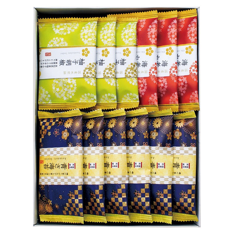 セット内容/青さ海苔煎餅×6、柚子胡椒煎餅・海老カレー煎餅×各3