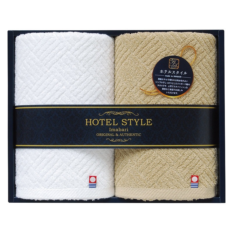 高級ホテルで使われるイメージでホテルタイプのタオルを作りました。しっかりとした織の使い勝ってのいいタオルは、お風呂上りやヘアードライに最適なものとなっています。また、上げ落ちによるジャガード織でシンプルで洗練されたイメージの仕上がりとなっています。白とゴールドとの組み合わせもベーシックでどんなシーンでも落ち着いた雰囲気を醸し出しています。スタイリッシュな贈り物としてお使いいただけます。