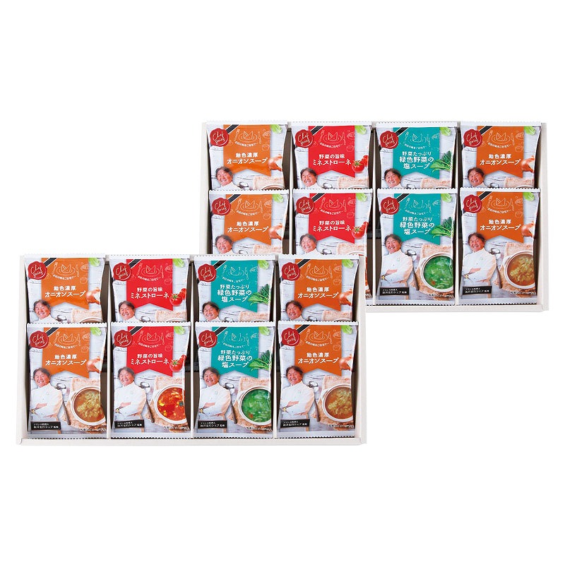 セット内容/オニオンスープ×8、ミネストローネ・緑色野菜の塩スープ×各4