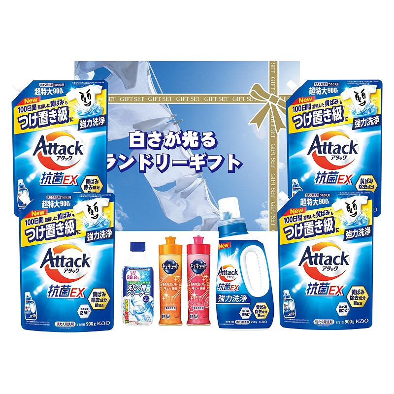 抗菌も消臭も洗浄もすべて解決できるアタック洗剤詰め合わせギフトです。