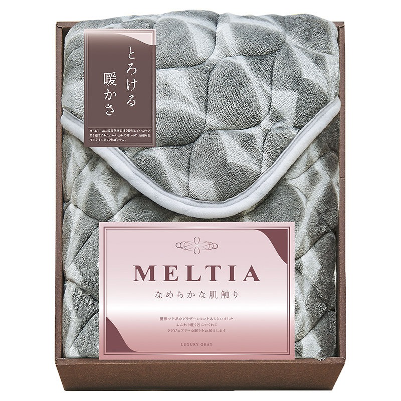 MELTIAは、中わたに吸湿発熱素材を使用しているので熱を逃がさずあたたかい。ゆったりと流れるグラデーションが、優雅で上品な印象の寝具です。薄くて軽いのに最適な温度で朝まで眠りを妨げません。とろけるような暖かさで上質な睡眠へと誘います。