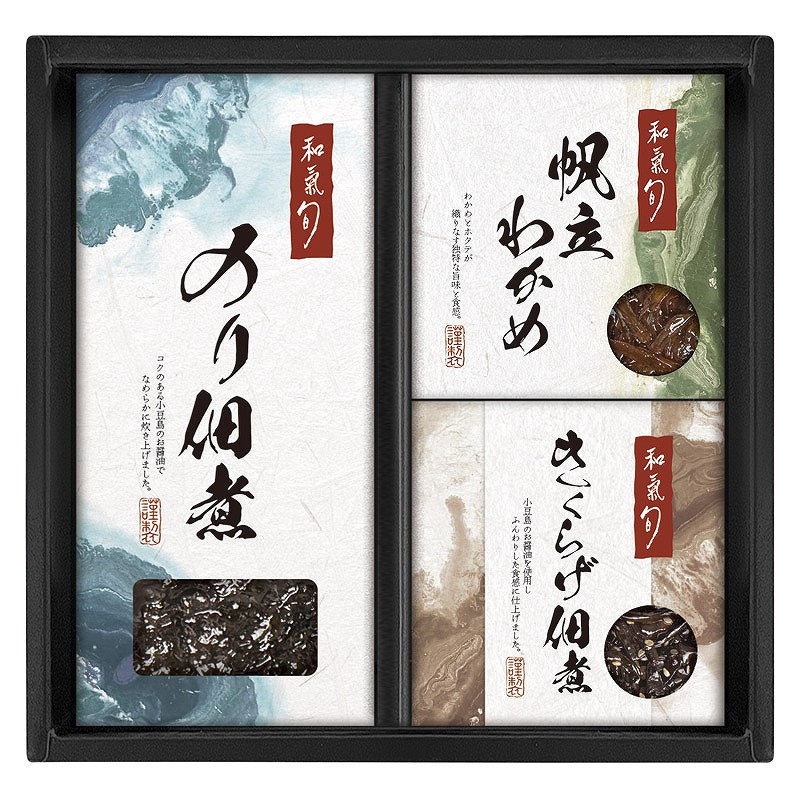のり佃煮(65g)・きくらげ(40g)・帆立わかめ(30g)×各1