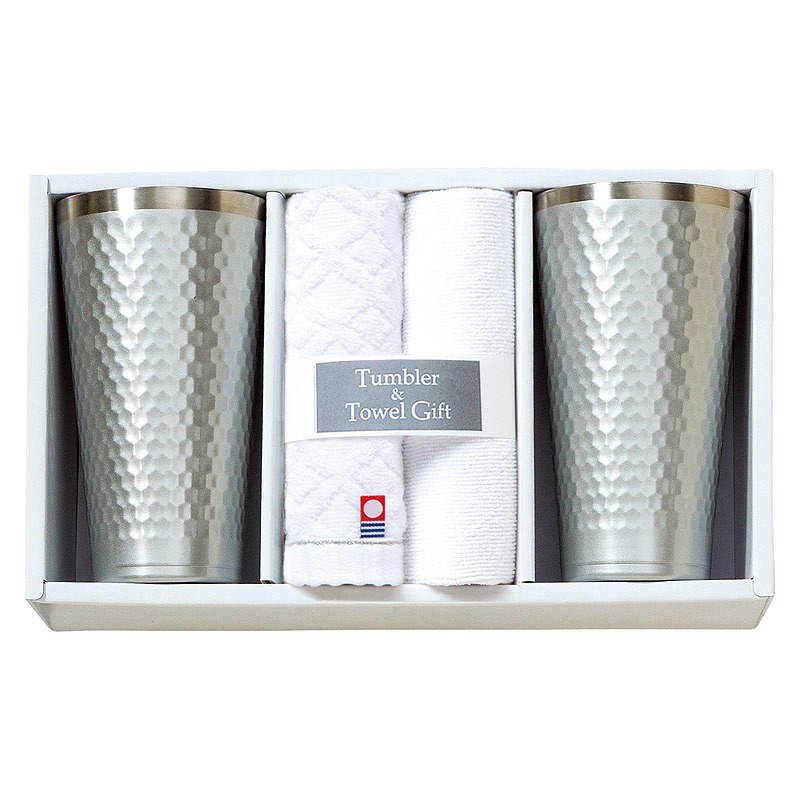 タンブラー(φ8×14.5cm・420ml)×2、今治ウォッシュタオル(28×30cm)・マイクロファイバークロス(25×25cm)×各1
