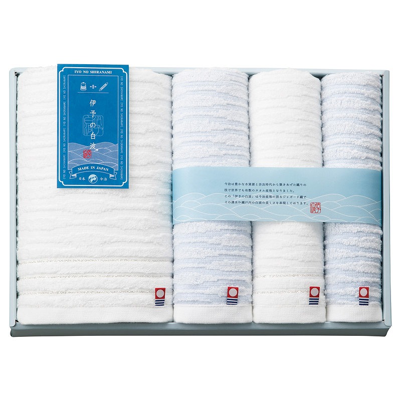 フェイスタオル(33×75cm)×2、バスタオル(60×110cm)・ウォッシュタオル(33×35cm)×各1