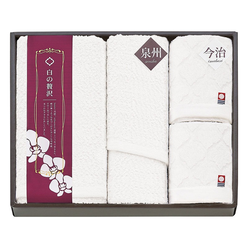 今治ハンドタオル(33×33cm)×2、泉州スリムバスタオル(34×110cm)・泉州スリムフェイスタオル(29×80cm)×各1
