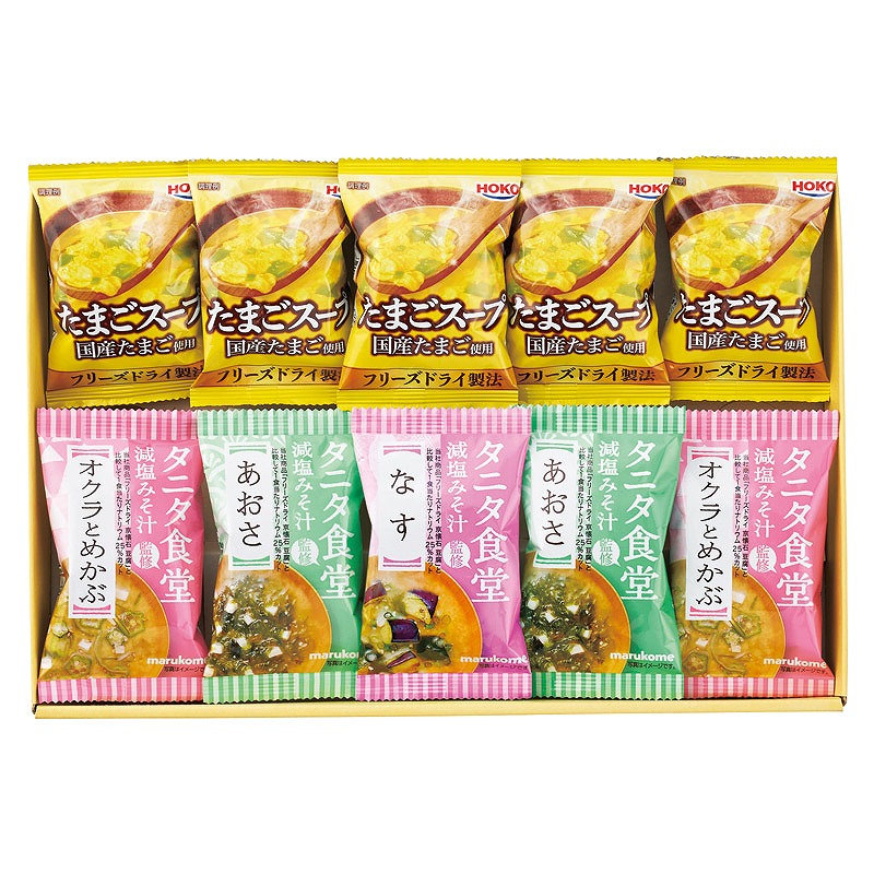 宝幸 たまごスープ×5、タニタ食堂監修減塩みそ汁(あおさ・オクラとめかぶ)×各2、タニタ食堂監修減塩みそ汁(なす)×1