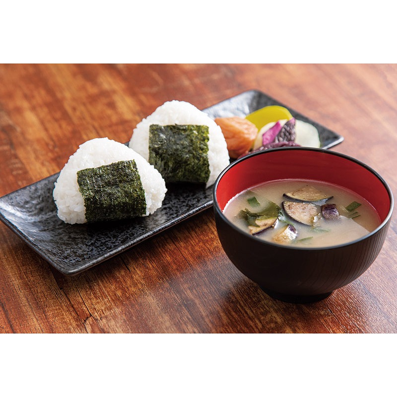 白子のり味のり(8切5枚入)×7、減塩いつものおみそ汁(なす9g・とうふ10.3g・なめこ8g)×各2、永谷園お茶づけ海苔(4.7g×3)・永谷園お吸いもの松茸風味(2.3g×3)・だしの素(10g×4)×各1
