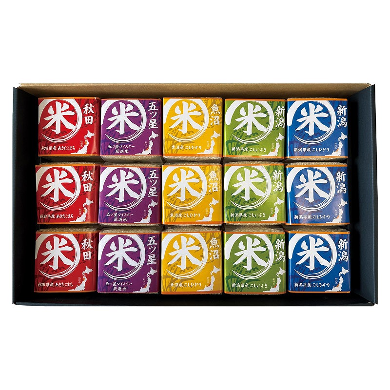 新潟県産コシヒカリ・新潟県産こしいぶき・秋田県産あきたこまち・ブレンド米・魚沼産コシヒカリ(各150g)×各3
