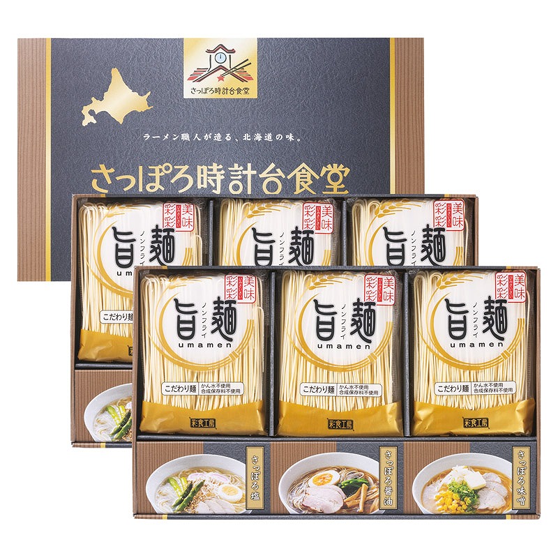 かん水を使用していない生麺を48時間熟成乾燥させ、うま味を凝縮させたノンフライの「旨麺」。まるで生麺のようなのど越しと食感が特徴のこだわり麺にガラスープと肉エキスの旨味とコクを香辛料の風味が味を引き立てているさっぽろ醤油スープ、じっくり炒めた香味野菜の甘さとガラの深いコクのさっぽろ塩スープ、白湯系のポークエキスのクリーミーな旨味に香味野菜を加え、豚脂のコク味とごま油の香ばしい風味のさっぽろ味噌スープの3種のスープをセットしました。