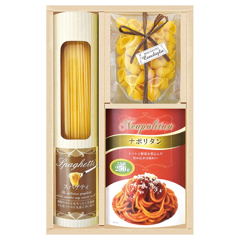 スパゲティ(130g)・パスタソース(ナポリタン2人前)(250g)・マカロニ(コンキリエ)(70g)×各1
