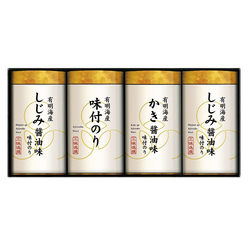 有明海産しじみ醤油味付海苔(8切16枚)×2、有明海産味付海苔・有明海産かき醤油味付海苔(各8切16枚)×各1
