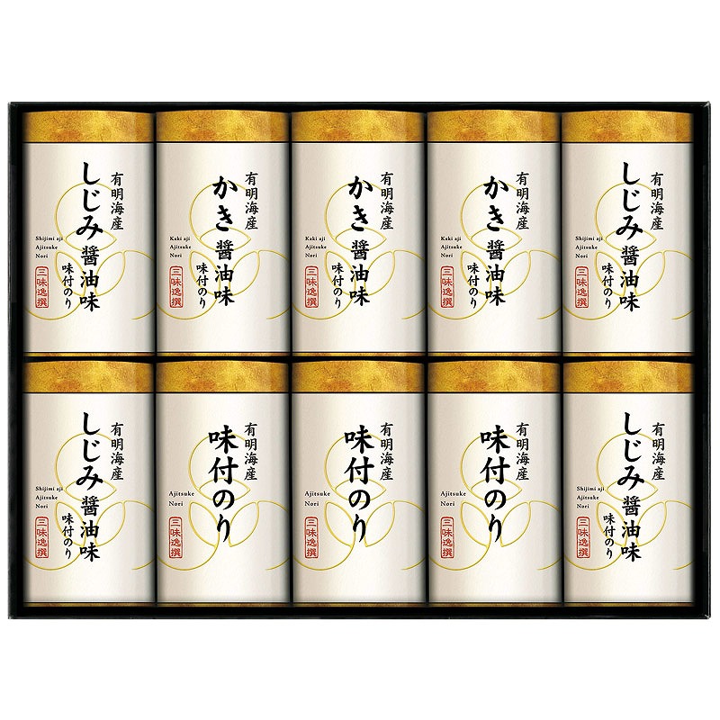 有明海産しじみ醤油味付海苔(8切16枚)×4、有明海産味付海苔・有明海産かき醤油味付海苔(各8切16枚)×各3