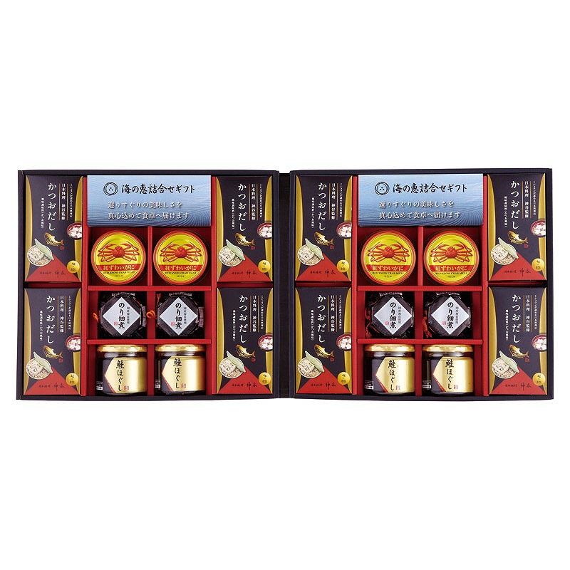 かつおだし(4g×8袋)×8、鮭ほぐし(50g)・のり佃煮(80g)・紅ずわいがにほぐし身(55g)×各4