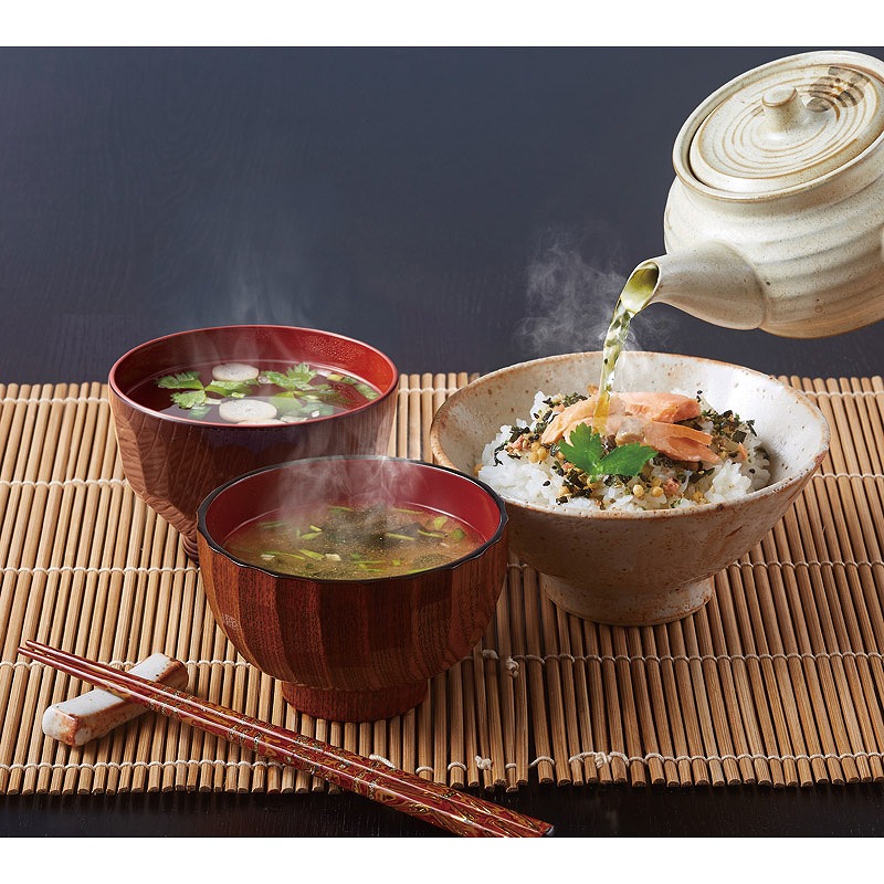 北海道産鮭のお茶漬けと濃厚な旨みの海老味噌汁の詰め合わせです。