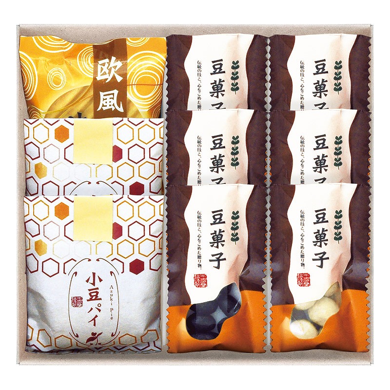 豆菓子(竹炭・きなこ)×各3、小豆パイ×2、欧風せんべい×1
