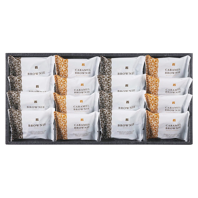 濃厚なショコラブラウニーにアーモンドフレークをトッピングし焼き上げたブラウニーとキャラメル風味のブラウニー。口どけなめらかな生地にビターな味わいとアーモンド風味がマッチしたブラウニーとキャラメルが香るキャラメルブラウニーの詰合せです。