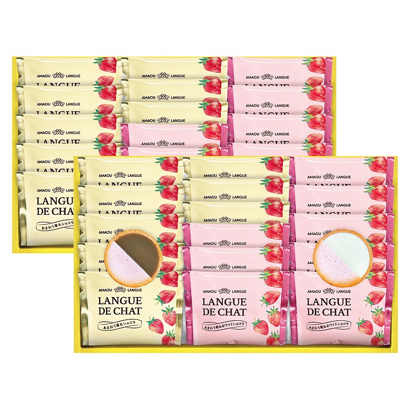 福岡県産あまおうを使用したいちごピューレを練り込んだサクサクのラングドシャクッキーでオリジナルのミルクチョコとホワイトチョコをサンドしました。優しい甘さと軽い食感、滑らかなくちどけをお楽しみください。