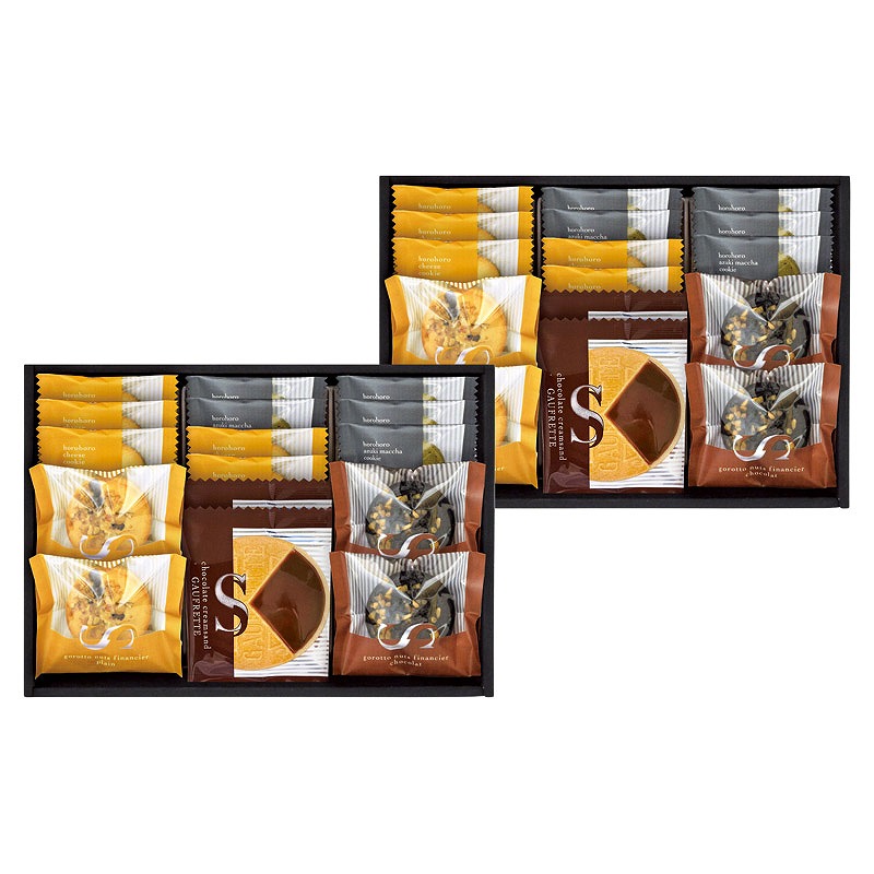 ほろほろクッキー(チーズ・抹茶)×各10、ごろっとナッツフィナンシェ(バニラ・ショコラ)・ゴーフレット(チョコ)×各4