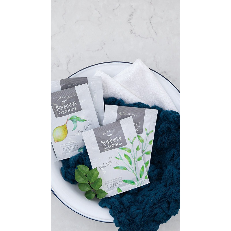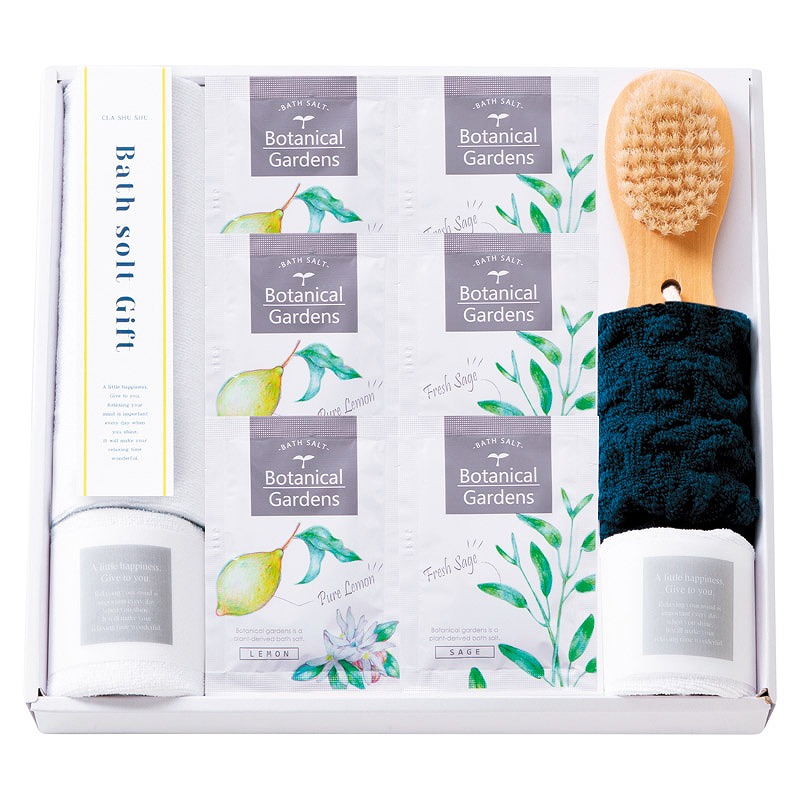 バスソルト(レモン・セージ)(各25g)・マイクロファイバークロス(中国)(25×25cm)×各3、ふわもこウォッシュタオル(中国)(22×22cm)・ブラシ(中国)(豚毛)×各1