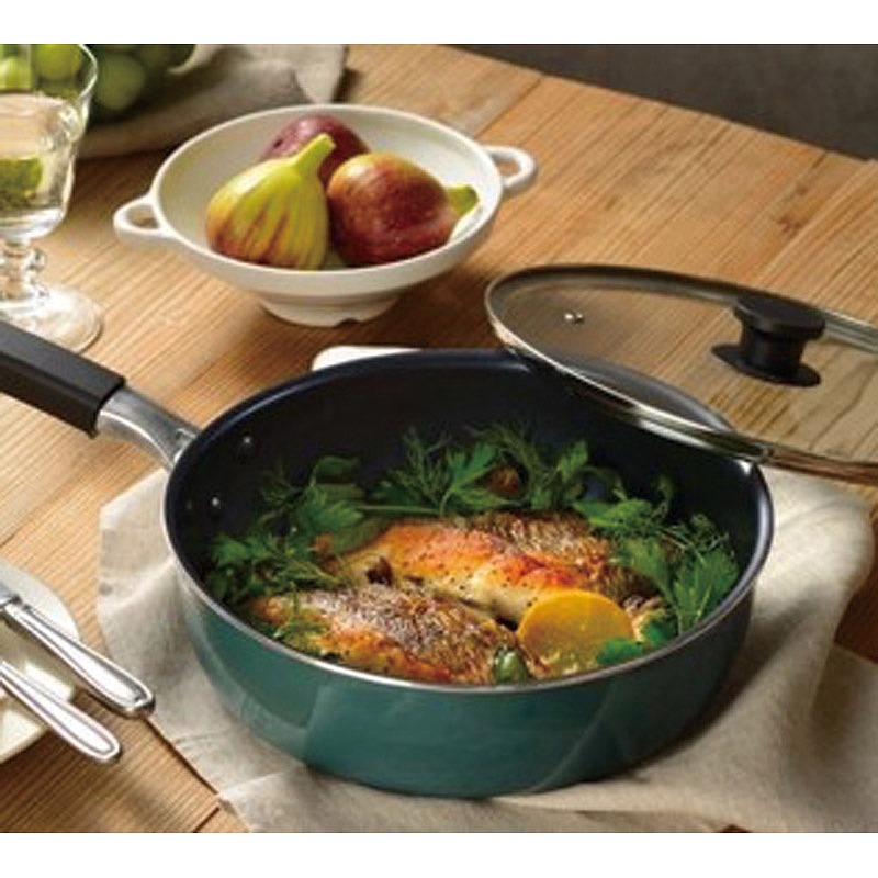美しくて使いやすい外面ホーローのフライパン。焼く、茹でる、炒める、煮る、揚げると様々な調理に使える深型。