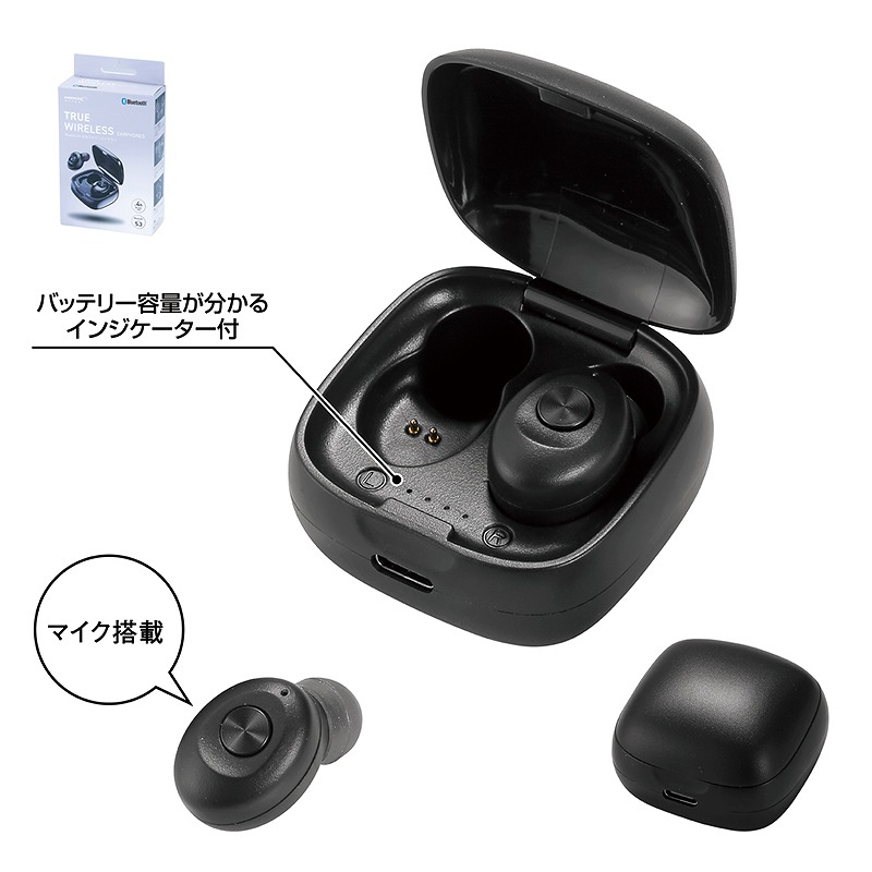 名入れ可能 セット内容:本体、蓄電用ケーブル(Type-C)、イヤーキャップ(中)付属、イヤーキャップ(大)・(小)×各1セット別付属 最大再生時間:4時間