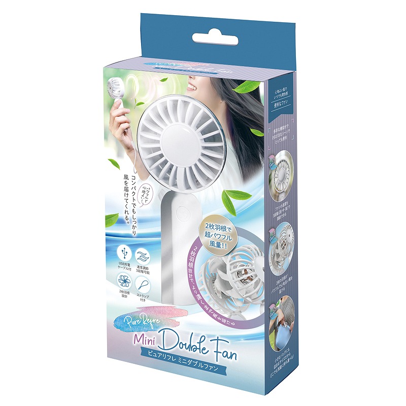 名入れ可能 セット内容:本体、ストラップ、蓄電用ケーブル(Type-C) 連続使用可能時間: 弱/約3.5時間 中/約2時間 強/約1時間 (風量により異なる) 蓄電時間:約3.5時間 バッテリー容量:1200mAh 申込単位 18個単位