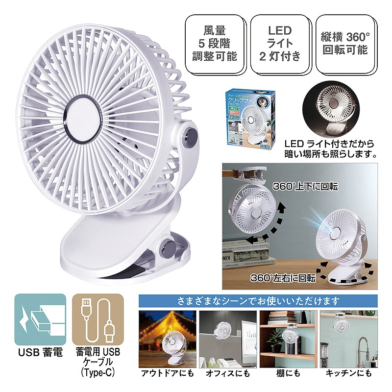 名入れ可能 セット内容:本体、蓄電ケーブル(Type-C) 連続使用可能時間: 最弱/約6時間 弱/約5時間 中/約4時間 強/約2.5時間 最強/約1.5時間 (風量により異なる) 蓄電時間:約6時間 バッテリー容量:1200mAh 申込単位 12個単位