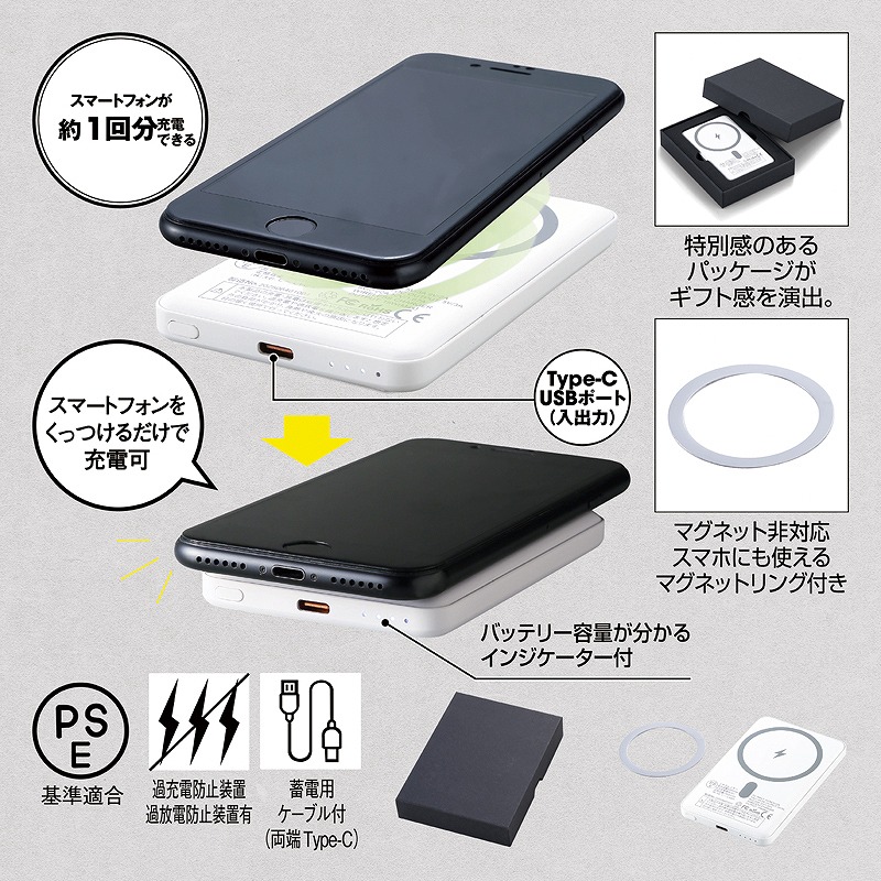 名入れ可能 セット内容:本体、蓄電用ケーブル(両端Type-C)、マグネットリング