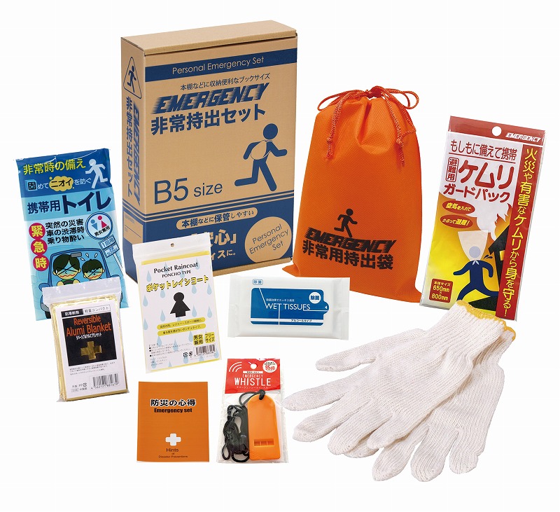 必要最低限のアイテムが揃うコンパクトな防災セット。外出先での被災の備えも最適です。