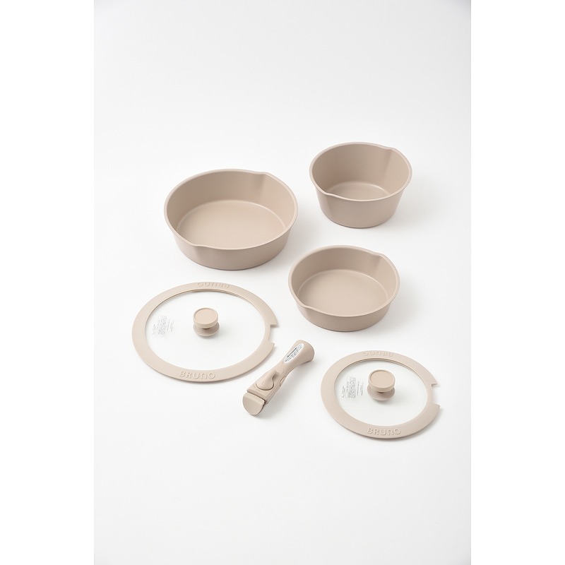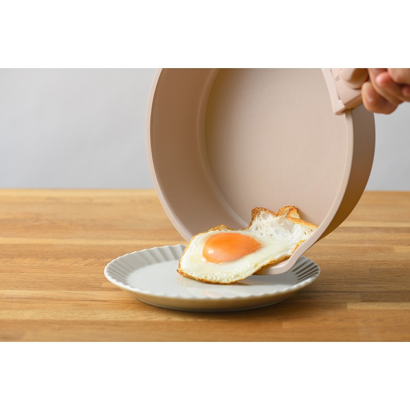 取っ手部分が取り外せるフライパンシリーズが登場しました。重ねてすっきり収納でき、冷蔵庫内での保存時も場所を取らずに便利。 洗練されたニュアンスカラーとマットな質感で、左右に注ぎ口のある独特な形状がアクセントに。食卓へ出しても映えるお皿のようなデザインが魅力です。 出来立てあつあつをそのままサーブでき、後片付けもラクラク。IH、ガス、オーブンに対応し、レシピの幅も広がります。 実用性とデザイン性を兼ね備えたシリーズで、料理をもっと愉しく、毎日にゆとりをもたらします。 *オーブン使用は180度未満