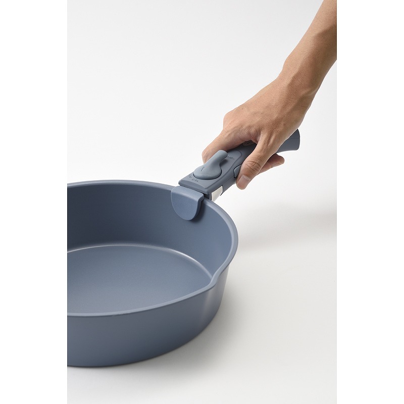 取っ手部分が取り外せるフライパンシリーズが登場しました。重ねてすっきり収納でき、冷蔵庫内での保存時も場所を取らずに便利。 洗練されたニュアンスカラーとマットな質感で、左右に注ぎ口のある独特な形状がアクセントに。食卓へ出しても映えるお皿のようなデザインが魅力です。 出来立てあつあつをそのままサーブでき、後片付けもラクラク。IH、ガス、オーブンに対応し、レシピの幅も広がります。 実用性とデザイン性を兼ね備えたシリーズで、料理をもっと愉しく、毎日にゆとりをもたらします。 *オーブン使用は180度未満