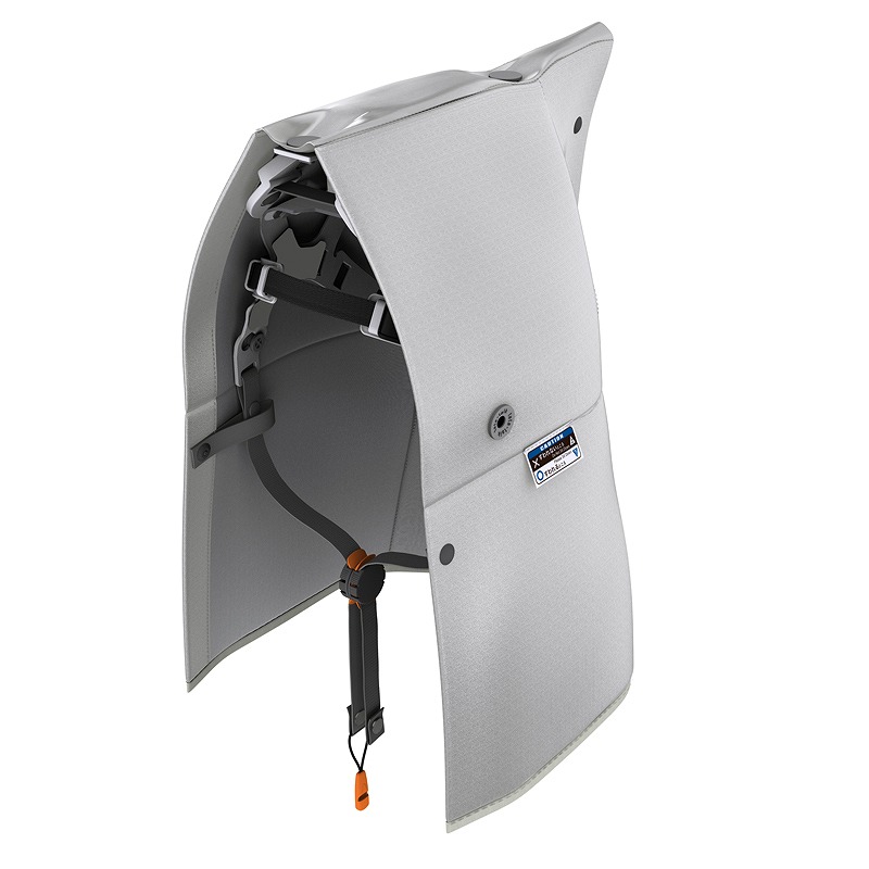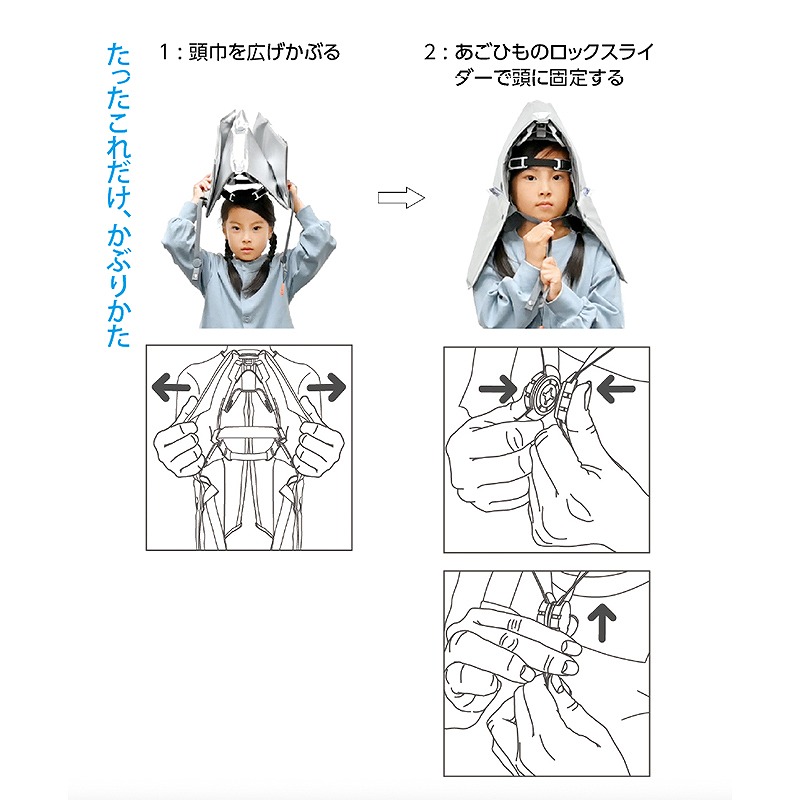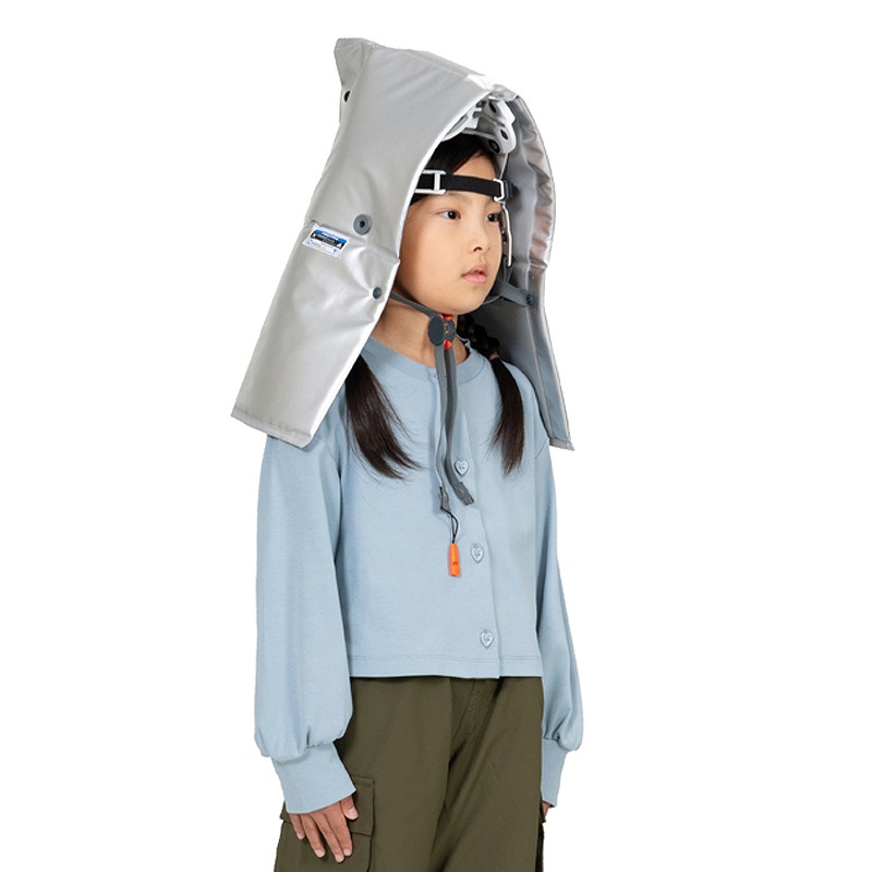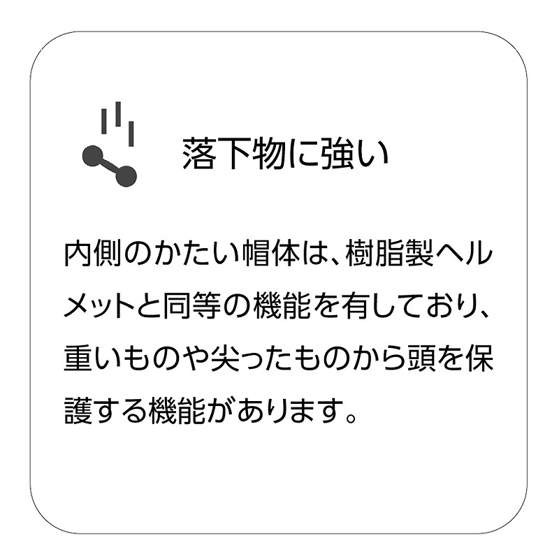 ・厚生労働省保護帽規格 「飛来・落下物用」国家検定合格品 ・防炎布は(公財)日本防炎協会認定の素材を使用 ・ホイッスル付き