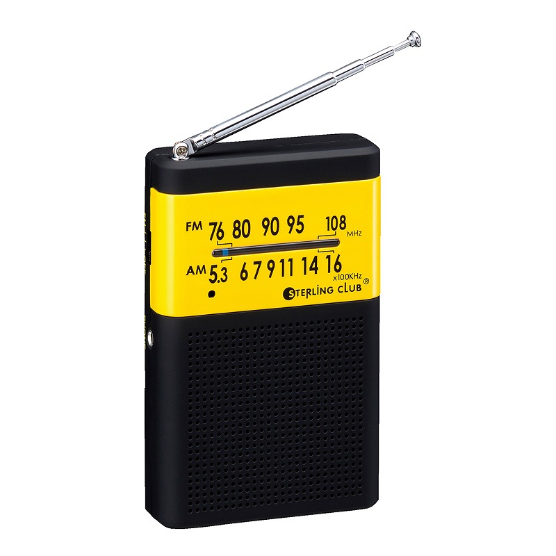 裏面に着脱式ベルトクリップ付き。AM/FMラジオ、イヤホンジャック(イヤホン別売)