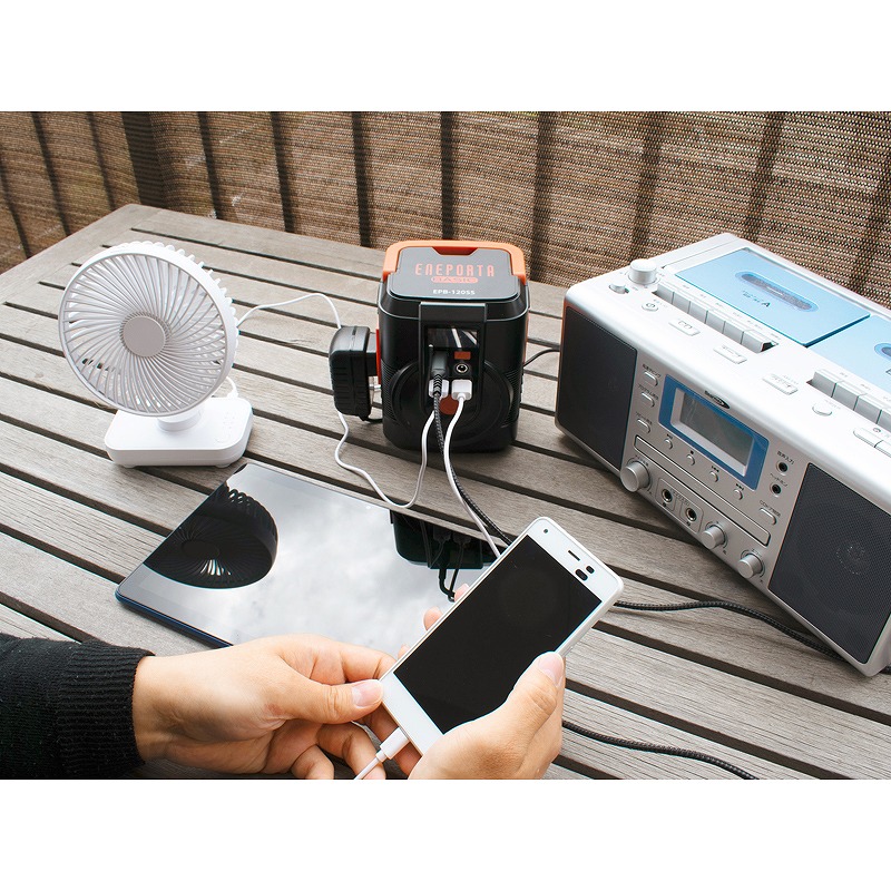 ●大容量電池:111Wh・30000mAh ●最大出力:120W ●同時に6つの機器に電源を供給可能。 AC:アース付3芯/2芯・2芯、DC:USB-A×2・USB-C×1 DC ●状況に合わせて充電方法を選べる。 ACアダプターから約7時間で満充電※1 ソーラーパネルから約16時間で満充電※2 ●停電時に灯りを確保 5段階LEDライト+SOSの6段階ライト切替 ※1、2 は理論値です。最大値の直射日光がすべてのパネルに満遍なく照射されている状態での合計時間(連続充電時間ではありません)です。