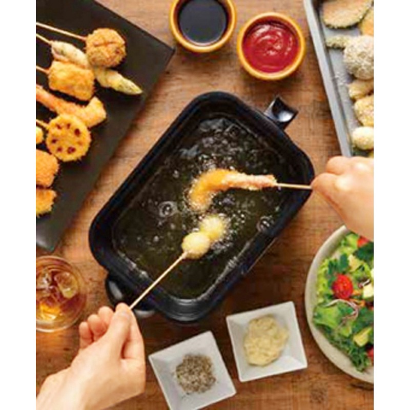 卓上で揚げたてを楽しめる電気フライヤーです。 角型なので大きなエビも揚げることができます。 温度調節が可能なので、メニューに合わせて幅広くお使いいただけます。