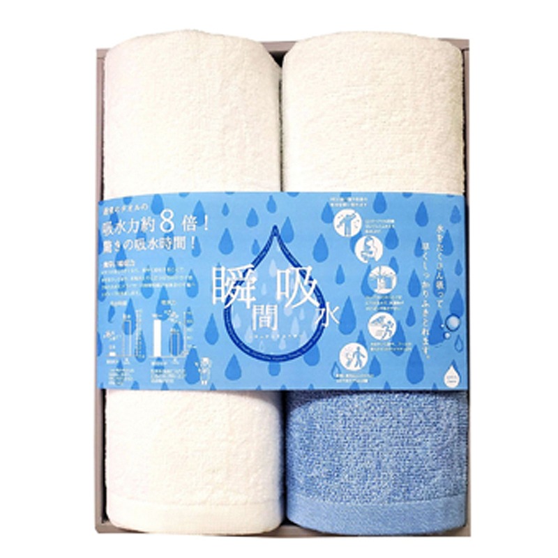 フェイスタオル×2(340×800mm)、バスタオル×1(450×1100mm) (材:綿80% レーヨン20%)