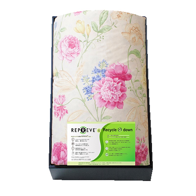 羽毛合掛布団×1(1500×2100mm) (材:側:ポリエステル85%・綿15%(再生ペットボトル繊維:リプリーブR使用)、詰め物:ダウン50%・フェザー50%(0.6kg)リサイクルダウン使用)