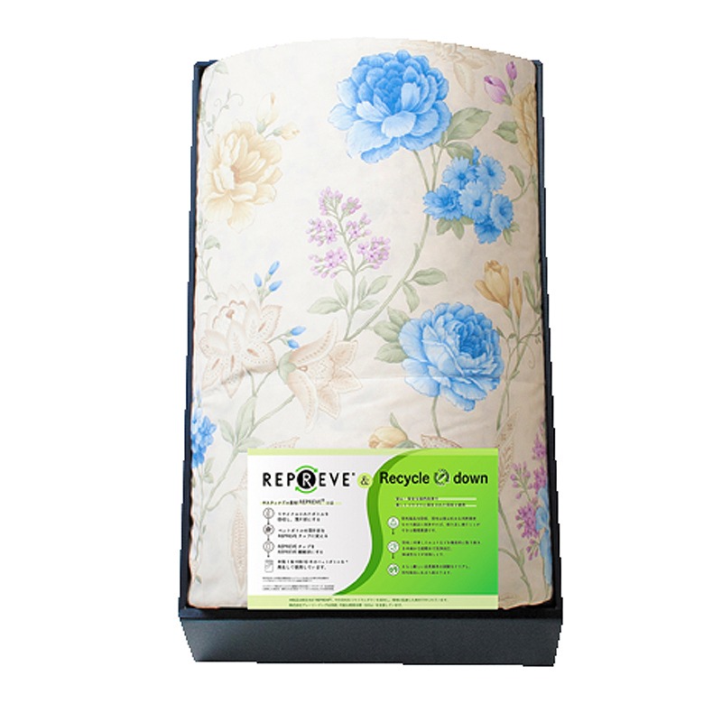 羽毛合掛布団×1(1500×2100mm) (材:側:ポリエステル85%・綿15%(再生ペットボトル繊維:リプリーブR使用)、詰め物:ダウン50%・フェザー50%(0.6kg)リサイクルダウン使用)