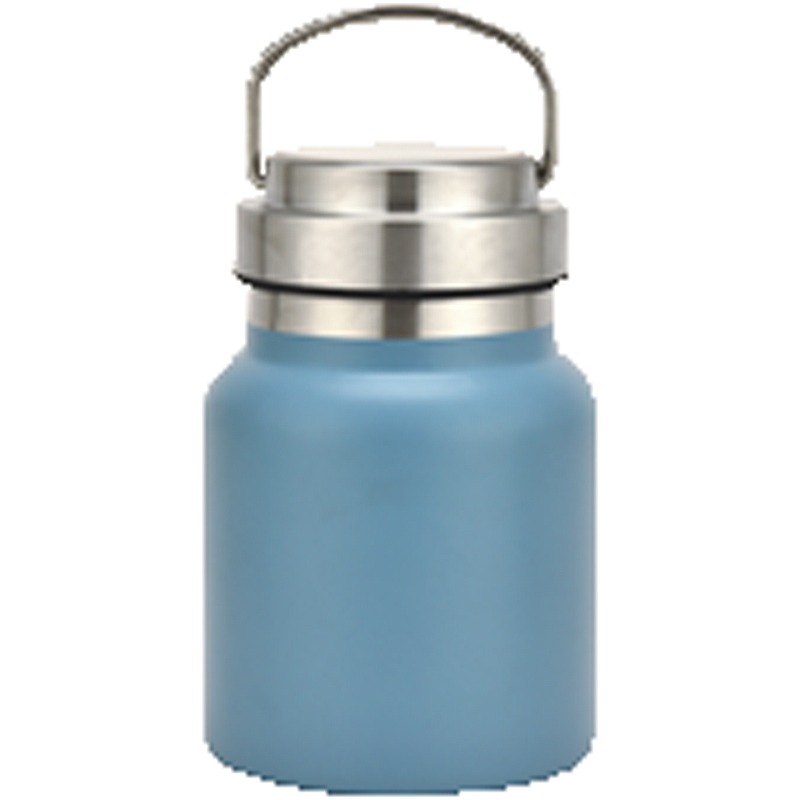 保温性を高める蓋つきのステンレス製のハンディフードポットです。