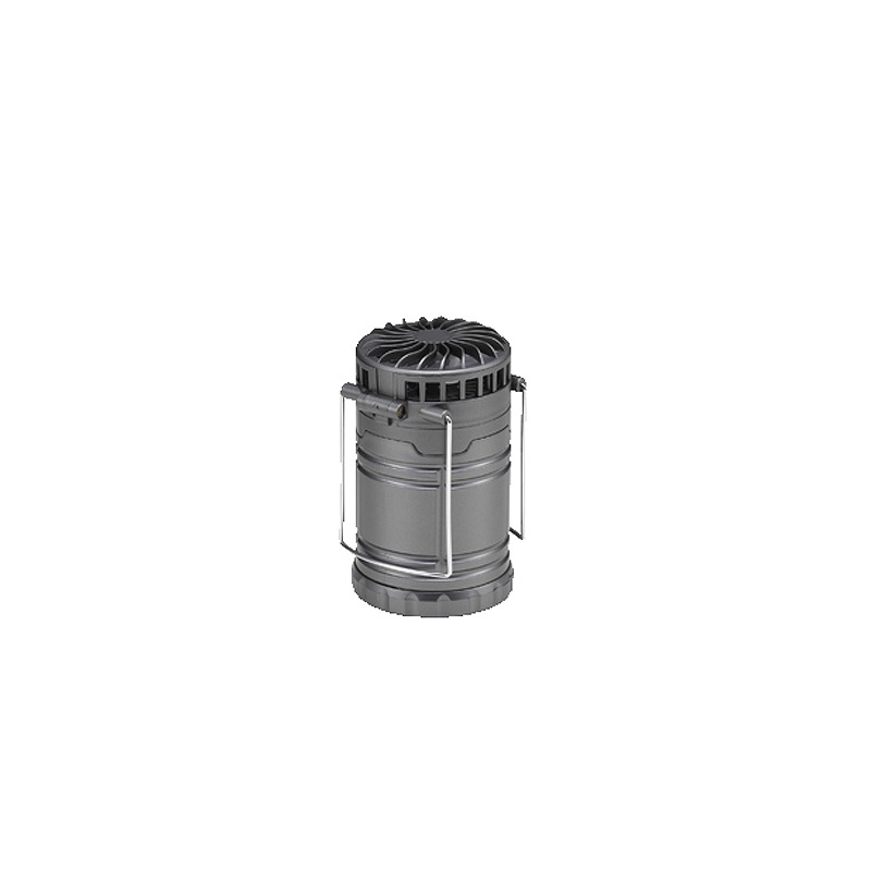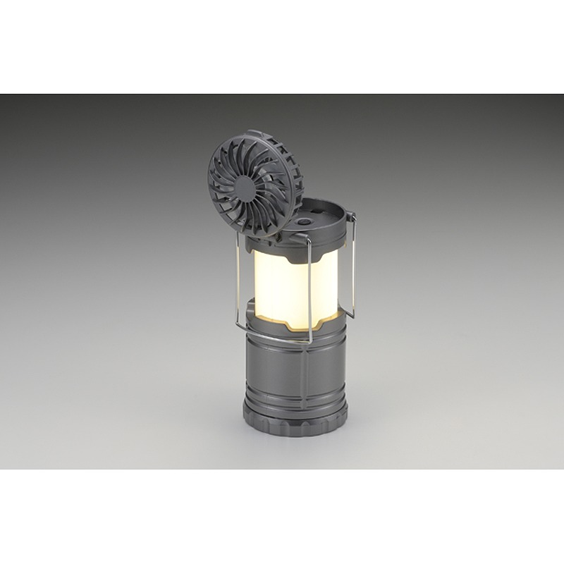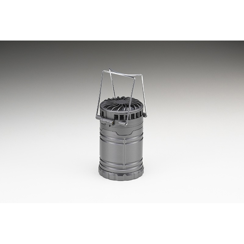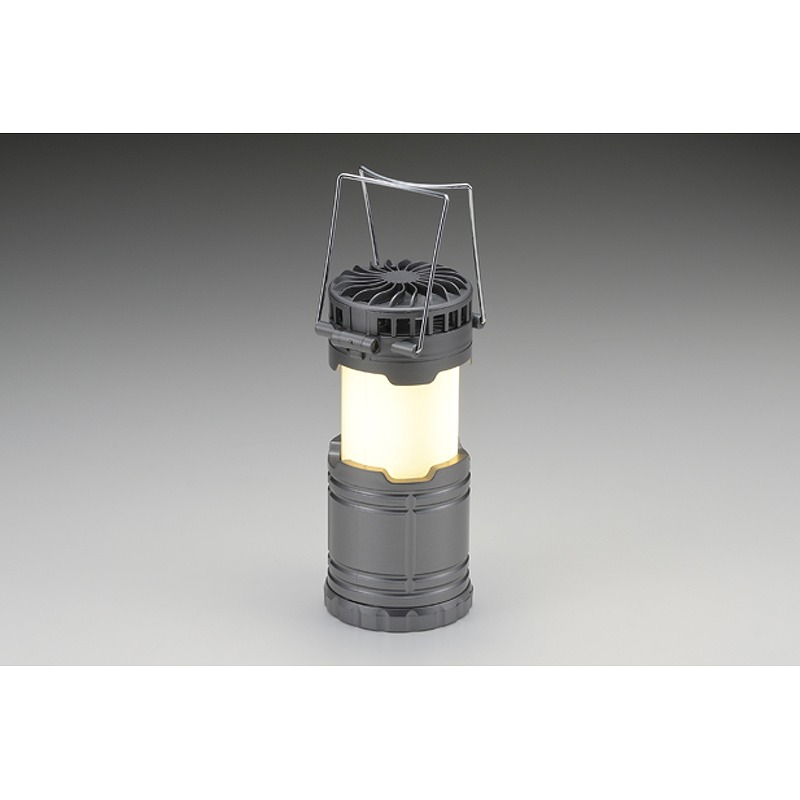 LEDランプで明るい。本体の上部を持ち上げるとランプが点灯し、下げると消灯します。換気の必要がないので車内や室内で使用できます。本体上部にはファンが付いてます。弱と強の二段切り替えです。