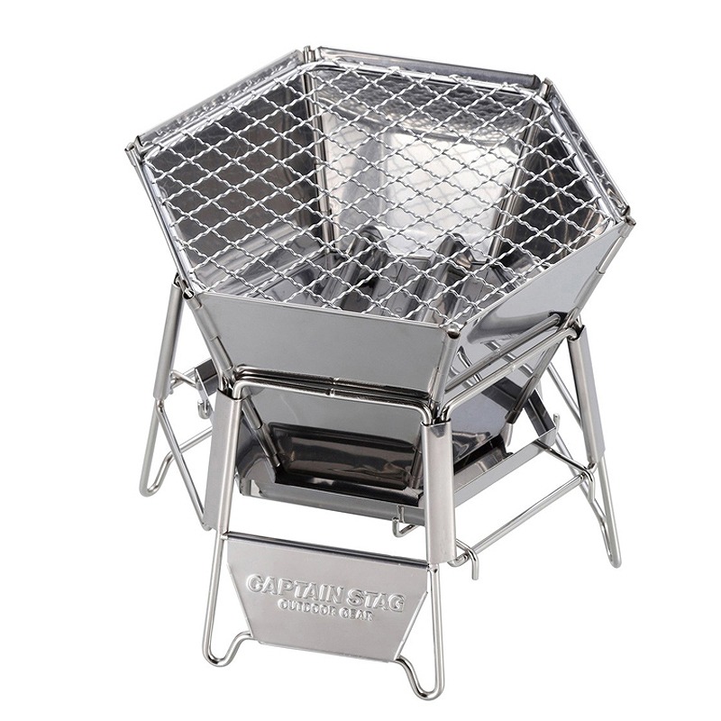 本体・底板・灰受け・スタンド・灰受けフレーム:ステンレス鋼、バーベキュー網:鉄(クロムめっき)、収納バッグ:ポリエステル