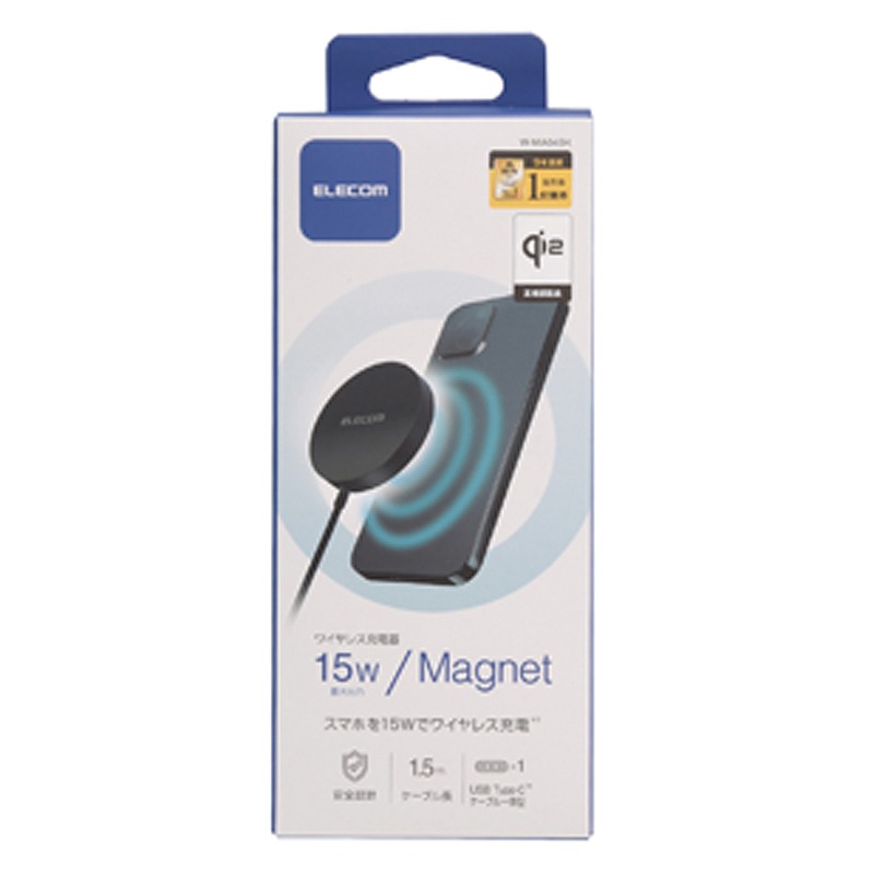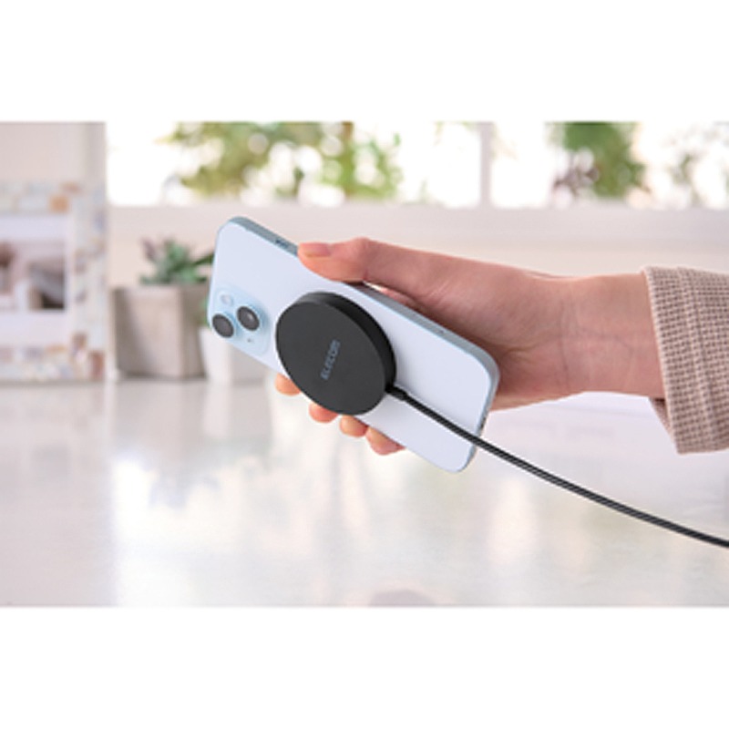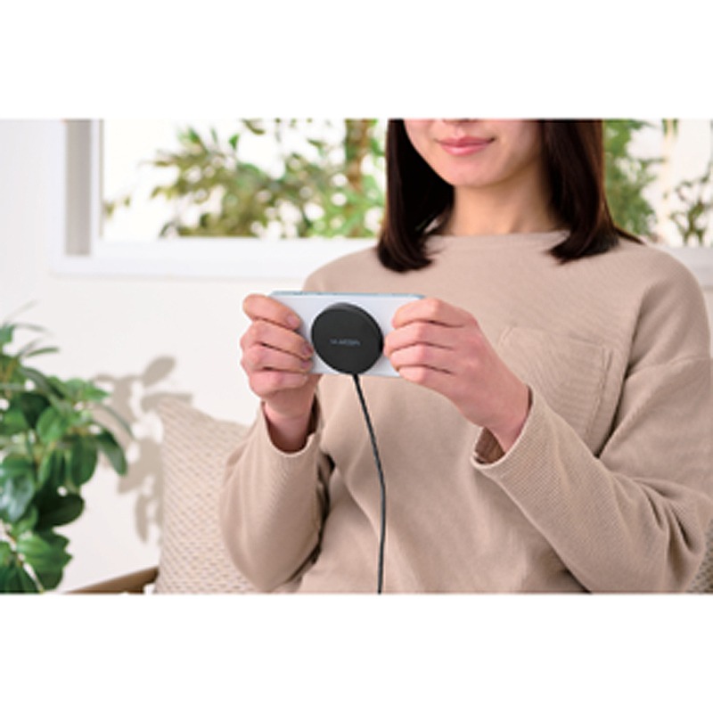 マグネットでQi2対応スマートフォンに固定するだけで高速充電できる、Qi2規格対応のワイヤレス充電器です。マグネットで背面にぴったりくっつくため、ワイヤレス充電中のスマホ操作も楽にできます。最大出力は15Wです。