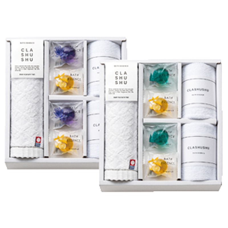 バスエッセンス:植物の葉や花、果実などから抽出されるエキスや植物油をとりいれた入浴料。 バスタブに入れるとカプセルがきれいに溶けて、豊かな香りとミルク色のお風呂が楽しめます。 ※マイクロファイバークロス、バスエッセンスは今治タオルブランド商品ではありません。