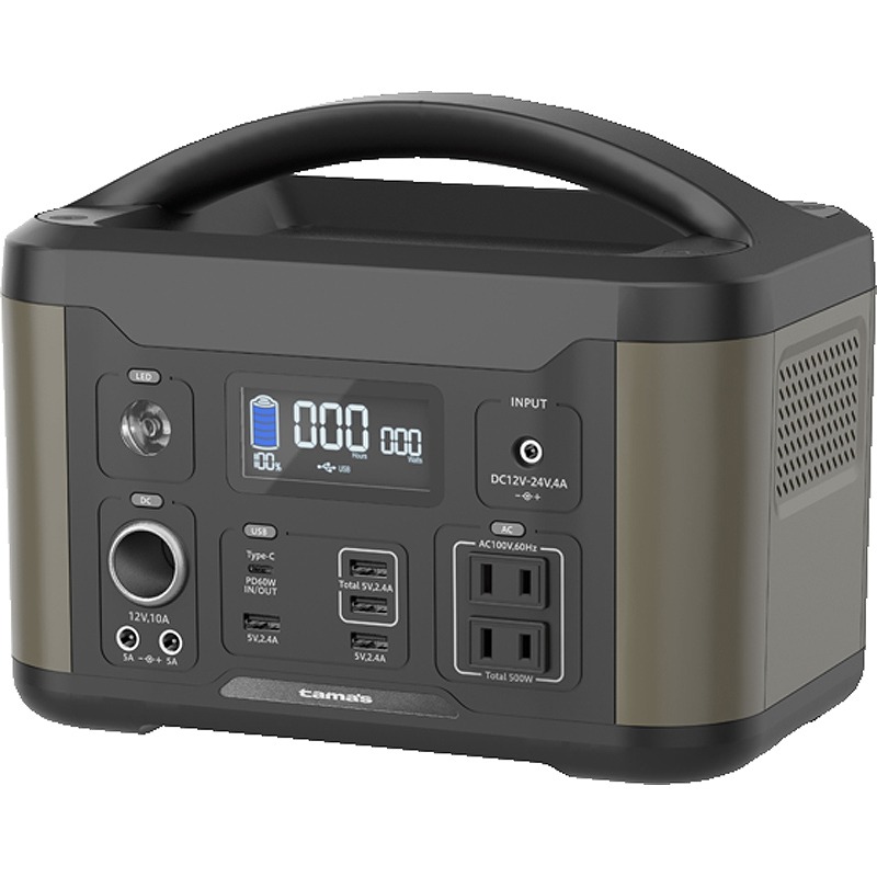 いろいろな電化製品の充電に使える大容量ポータブル。キャンプや災害時の電源供給に最適な製品です。 充電池容量506Wh/136800mAhタイプ。USB-Aポート×4/USB-Cポート×1/DCソケット×1。バックライト付き液晶ディスプレーで暗い場所でも安心