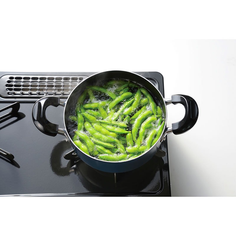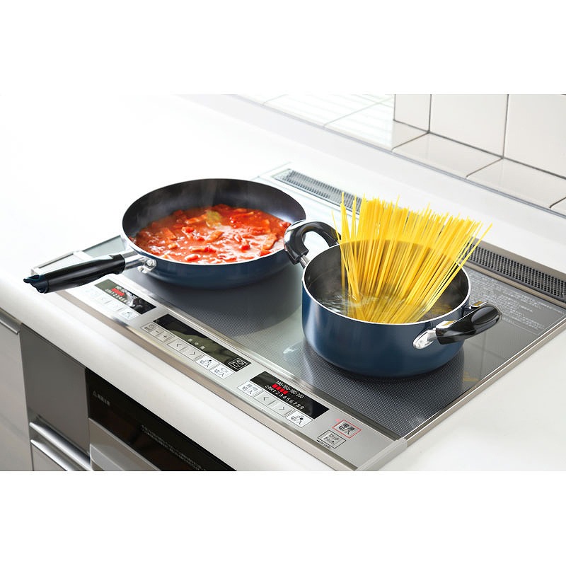 両手鍋18cm(910g)(2L)×1(190×300×140mm) (材:本体:アルミニウム合金、底面:ステンレス板貼り底、内面:フッ素樹脂加工、外面:焼付塗装、蓋:強化ガラス)、フライパン24cm(570g)×1(245×405×110mm) (材:本体:アルミニウム合金、底面:ステンレス板貼り底、内面:ふっ素樹脂加工、外面:焼付塗装)
