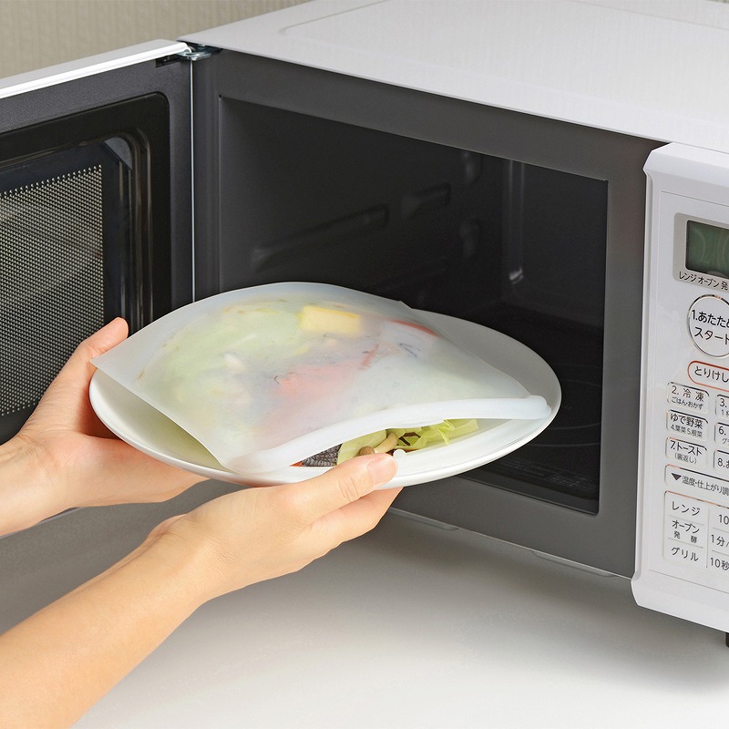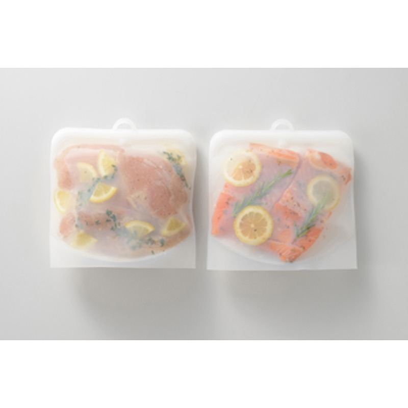 温め、蒸す、潰す、漬ける、低温調理、冷蔵、冷凍が可能なシリコーンバッグです。 繰り返し使えるので経済的です。 フック付で調理の取り出しや収納に便利。