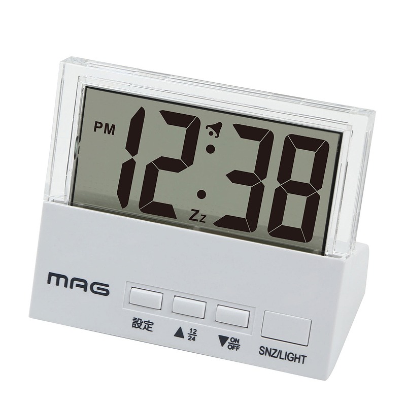 電子音アラーム、スヌーズ、バックライト、12/24時間表示切替