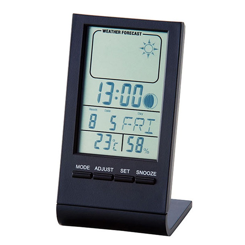 時計、アラーム、スヌーズ、カレンダー、温度計、湿度計、天気予報、ムーンフェイズ機能